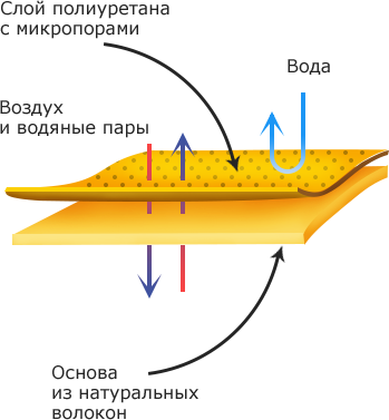 Это высокотехнологичный искусственный материал, который состоит из хлопковой основы и полиуретановой плёнки.